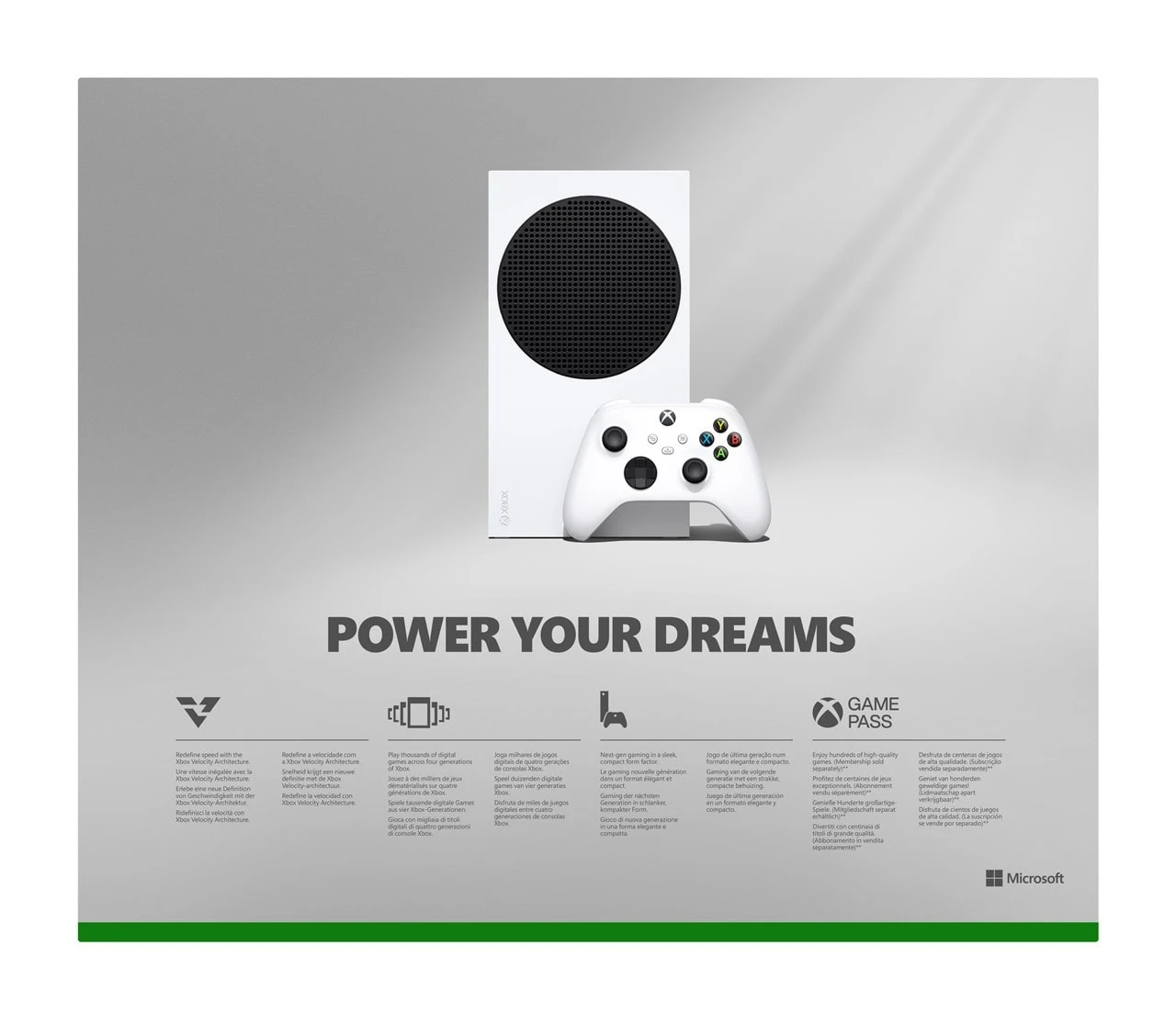 Nākamās paaudzes spēles, nodrošina Microsoft ar lielāko digitālo bibliotēku, mazākajā Xbox versijā. Pateicoties dinamiskākai spēļu pasaulei, ātrākam ielādes laikam un Xbox Game Pass (nopērkama atsevišķi), pilnīgi digitālā Xbox Series S, nodrošina izdevīgu un konkurētspējīgu spēļu pieredzi.