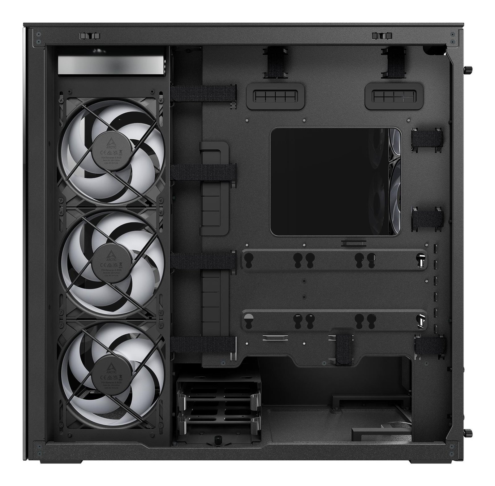 Модульные съемные кронштейны для установки 140-мм вентиляторов сверху или сбоку.