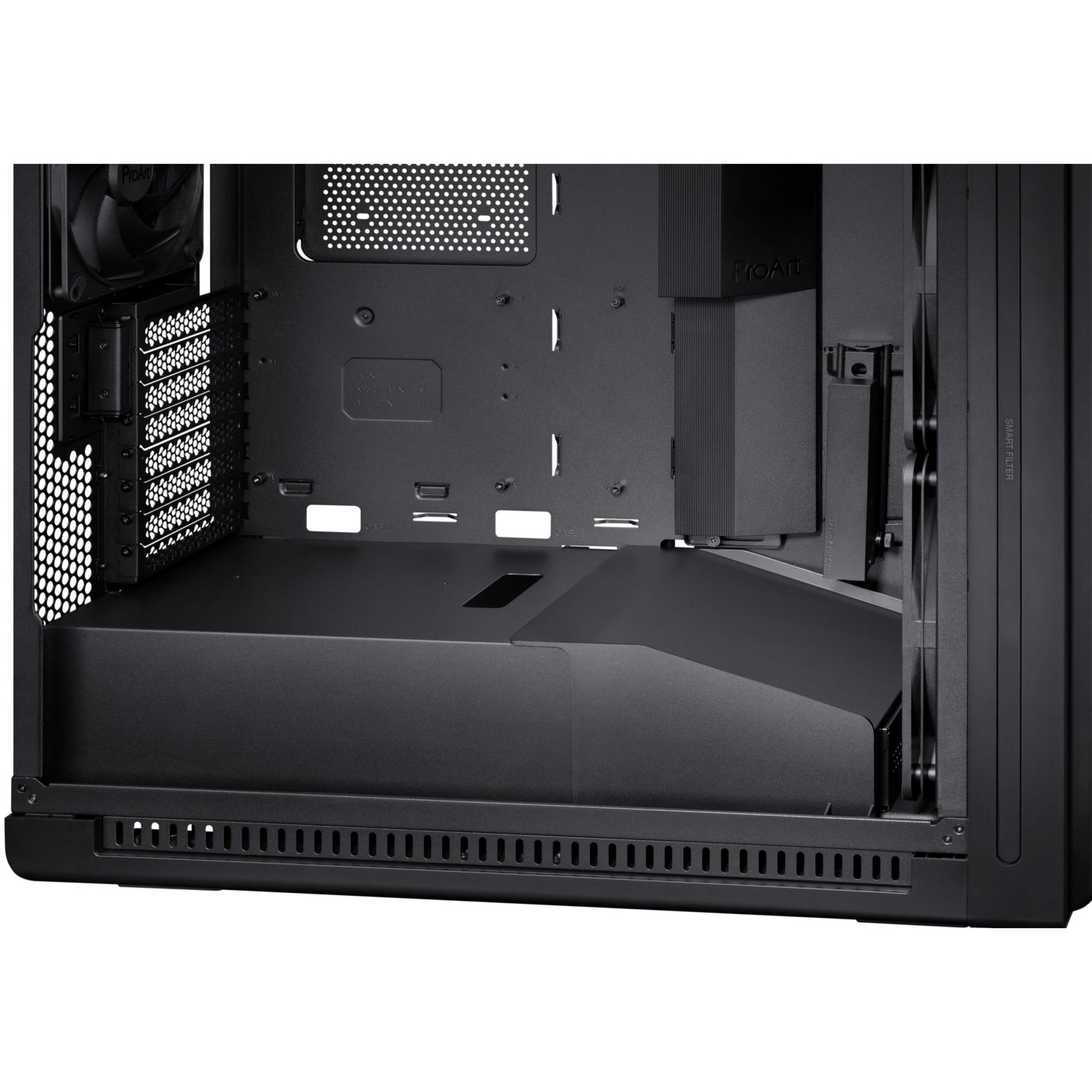 Корпус ProArt PA602 упрощает процесс сборки ПК благодаря полному набору инновационных функций и готов к удобному повседневному использованию: автоматическое обнаружение пыли, встроенные колесики для легкого перемещения и многое другое.