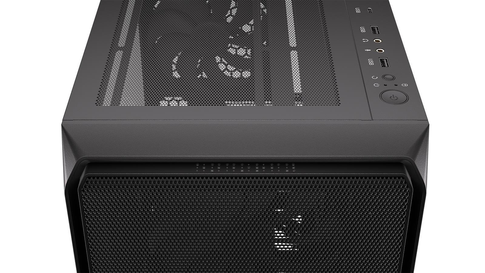 Если говорить о лучшей, на наш взгляд, особенности Arx 500 ARGB, то мы бы назвали превосходную вентиляцию. Она обеспечивается тонко перфорированными стальными панелями (среди прочего, включая отличные вентиляторы). Некоторые, вероятно, скажут, что можно добавить еще один слой фильтров, но правда в том, что двойной пылезащитный кожух ограничит поток воздуха, как металлическая броня на ролевой игре.