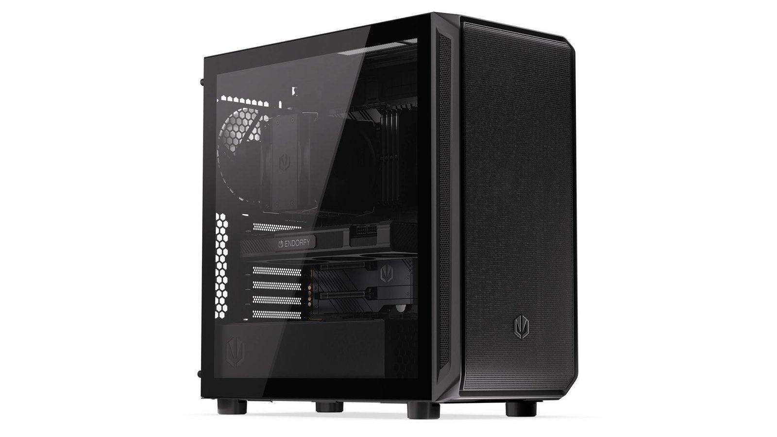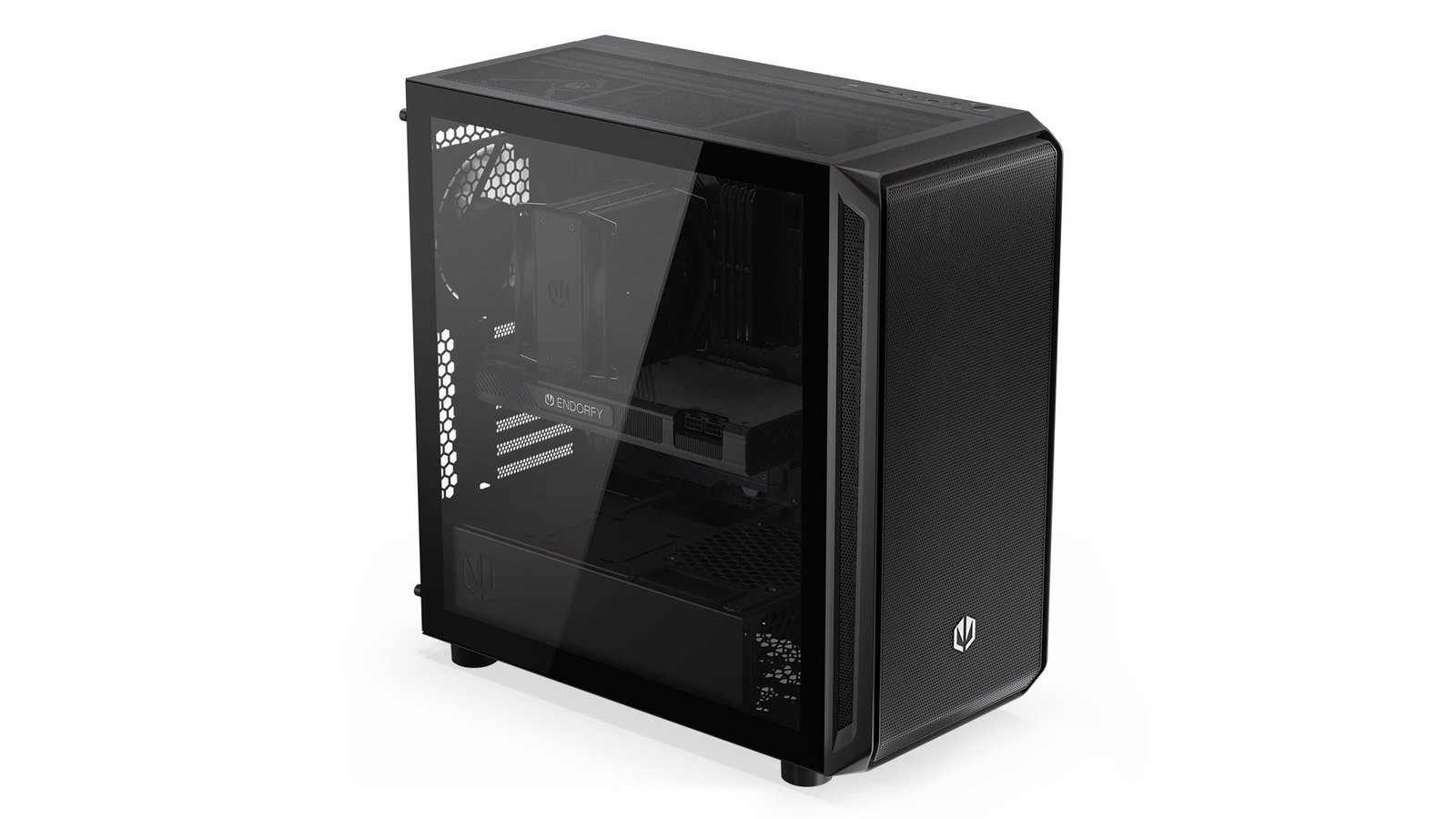 Это самый большой корпус для ПК, который мы когда-либо производили (486×228×472 мм). В него легко поместятся все ваши компоненты — например, высокая система охлаждения (до 179 мм), 8 вентиляторов (включая 5 предустановленных Stratus 140 PWM) и практически любая доступная видеокарта (до 410 мм). Корпус ENDORFY Arx 700 Air обеспечивает приятный приток свежего воздуха благодаря сетчатым панелям (спереди и сверху), которые пропускают воздух, предотвращая попадание грязи и пыли внутрь корпуса. Словно стражи, охраняющие врата рая.