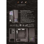 - Предустановленные вентиляторы ARGB, 1x 120 мм снизу спереди, 2x 120 мм сверху, 1x 120 мм сзади (длина кабеля: 450 мм, 6 контактов)